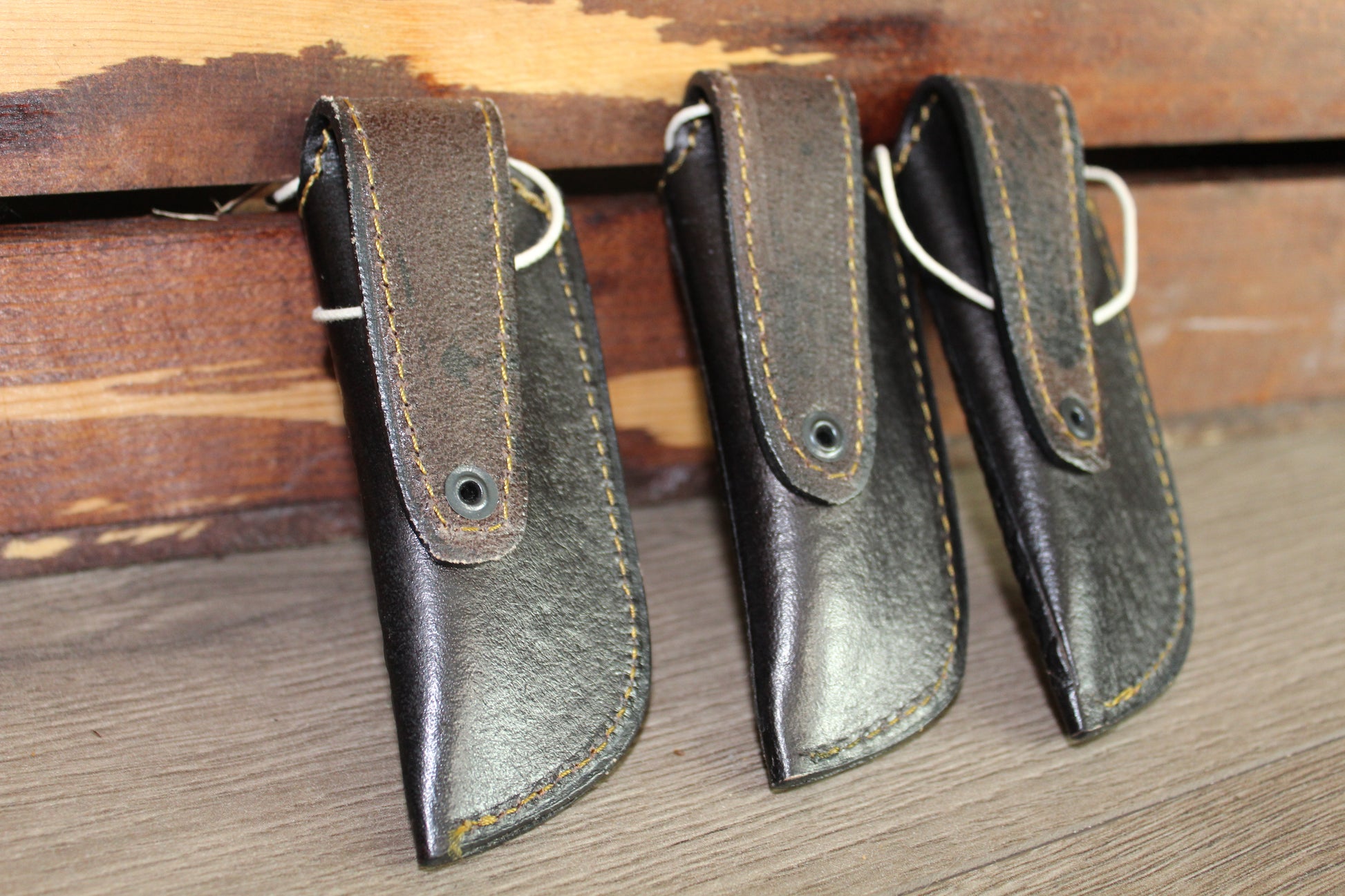 Black Leather Sheath Hand Toodled Knife Holster, Funda de Navaja Cincelado