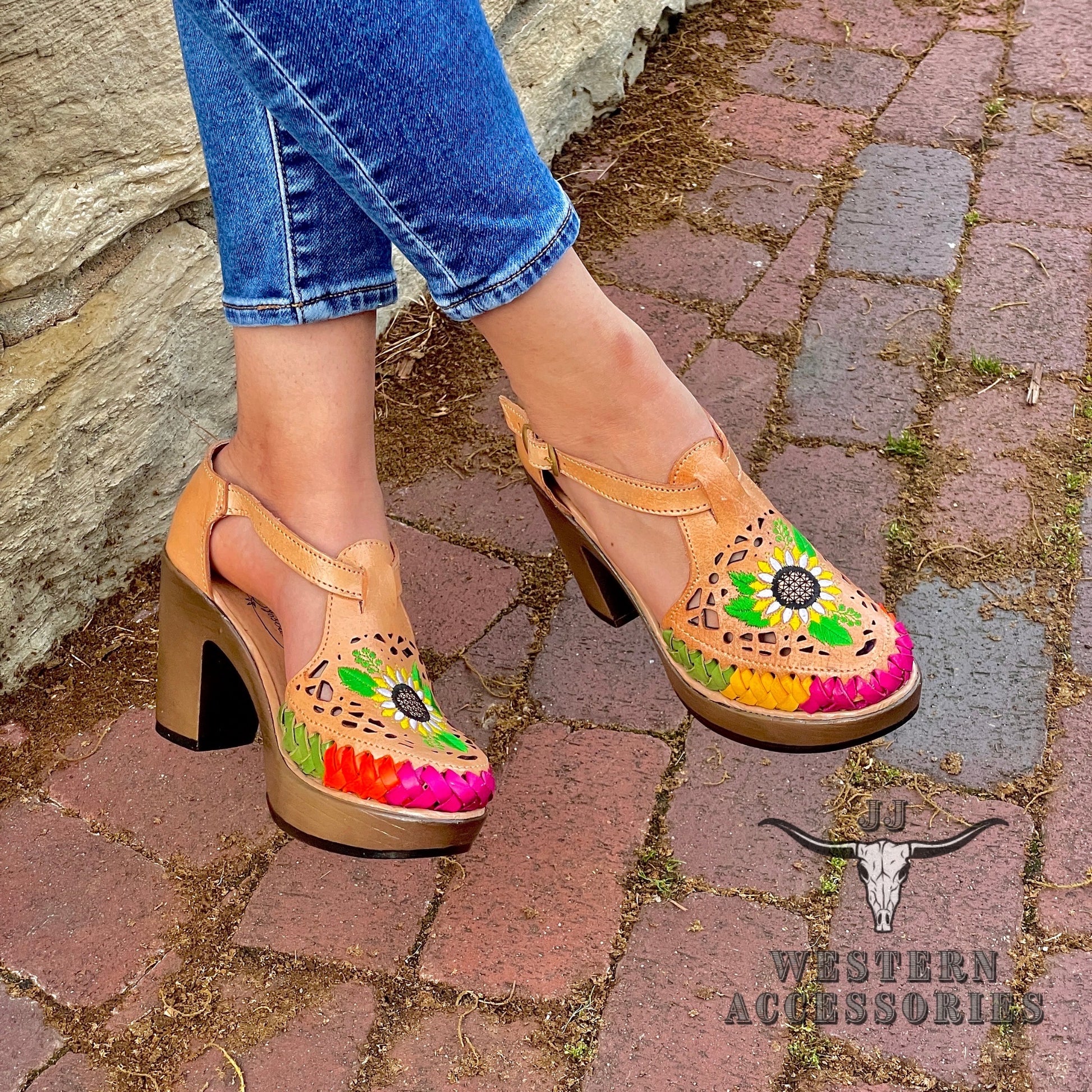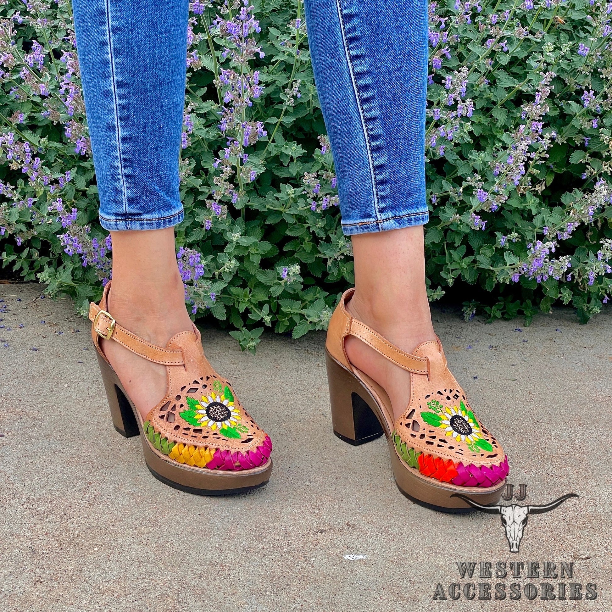 Huaraches Mexicanos Tacon Laser Girasol Laser Cut Sunflower Heel Sandal