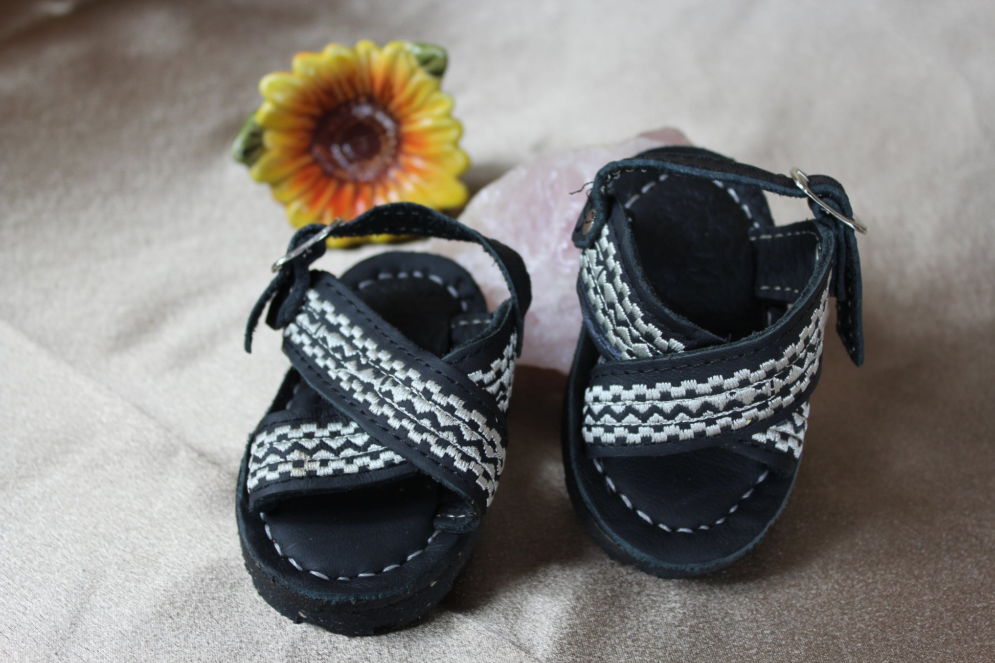 Kids & Baby Two Strap Cross Over, black Grekas Embroidered Mexican Huaraches Sandals